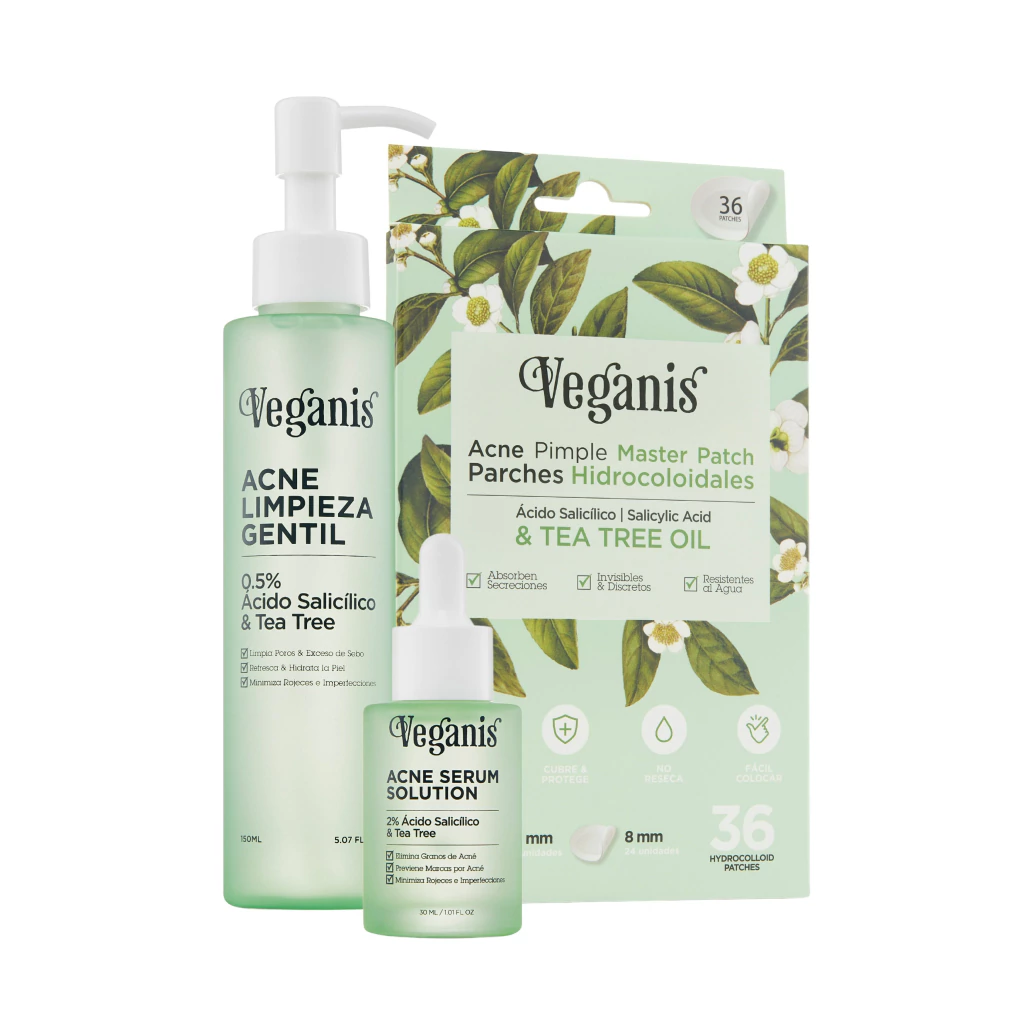 Además, cuenta con un Serum de 30 ml que actúa profundamente para equilibrar la piel y reducir visiblemente el acné, aportando frescura y luminosidad. Para un cuidado puntual y discreto, se incluyen 36 parches invisibles que protegen y aceleran la cicatrización de imperfecciones.